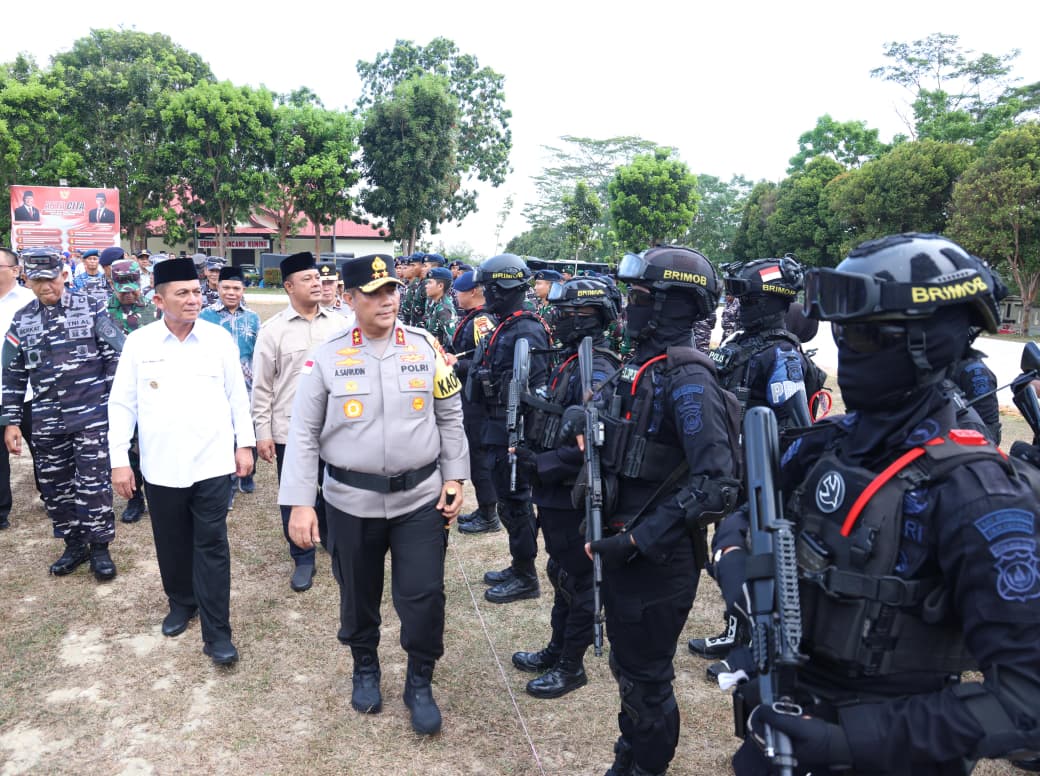Dalam kesempatan tersebut, Kapolda Kepri Irjen Pol. Asep Safrudin, S.I.K., M.H., membacakan amanat Kapolri Jenderal Polisi Drs. Listyo Sigit Prabowo, M.Si., yang menyampaikan bahwa situasi global saat ini menunjukkan eskalasi yang meningkat, termasuk konflik di Timur Tengah yang melibatkan Israel, Palestina, dan Iran. Dampak dari konflik tersebut telah memicu gejolak harga minyak dunia yang berpotensi melemahkan nilai tukar rupiah, meningkatkan inflasi, serta mengganggu stabilitas ekonomi nasional.